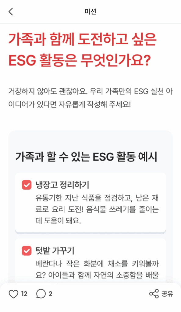“가족과 함께 도전하고 싶은 ESG 활동 아이디어를 공유해주세요!”